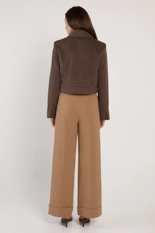 Devyn Wool Blend Cropped Jacket Chocolate