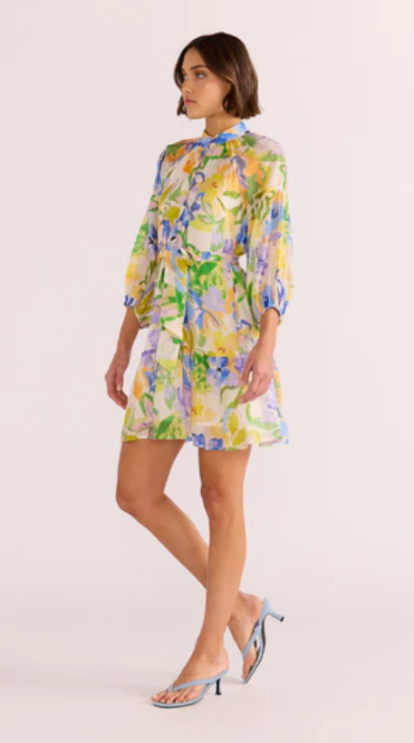 Fable Blouson Mini Dress Painterly-Floral